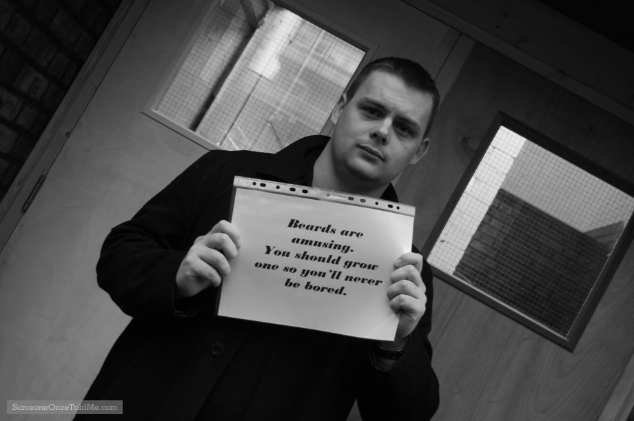 425He was told this by his friend Ruth. "I did have a beard but I shaved it off yesterday," he confessed. Taken in Soho, London, and he even brought his own pre-printed SOTM message.