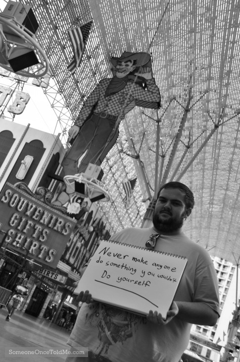 792This superb chap, who is excellent company, showed me around Los Angeles during my trip there last summer. He explains in his audio commentary that he heard this from his aunt Wendy, when they were discussing his recent promotion at work. Taken in Las Vegas, USA.