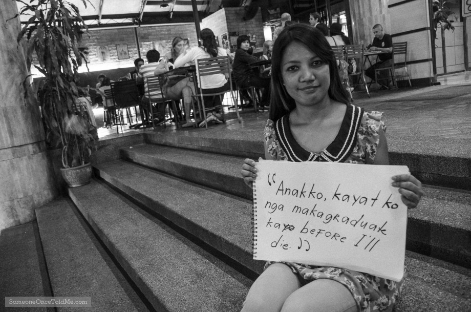 She told me this for a year when she found out that she had breast cancer. Now that she passed away it gives me inspiration, this drives me to reach my dreams that I have to go back to school because I stopped because of inevitable circumstances.