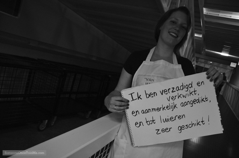 2198She said this is something her grandfather says, whenever hes finished with his dinner. Its spoken in old Dutch, she explains.