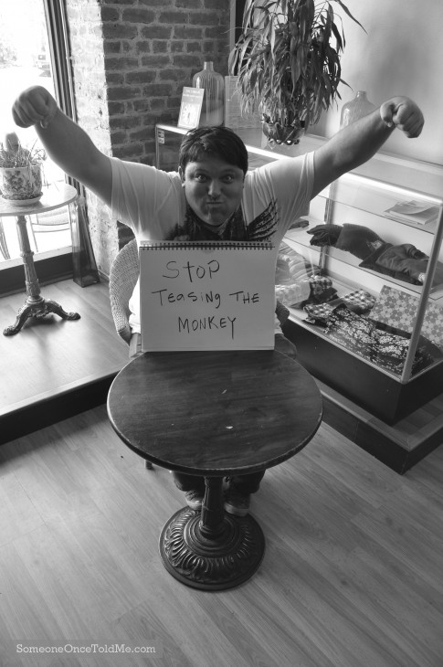 740He tells the remarkable tale of being aged about seven or eight and regularly teasing a chimpanzee at a local pet shop. One day, the chimp got free and exacted his revenge on our subject, who had not heeded the warning you see in his SOTM.