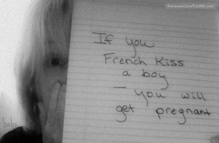 She wrote: My mom used to tell me If you french kiss a boy, you will get pregnant.... hmmmmmm......... what??????