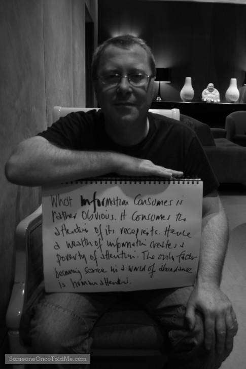 "I like this one. It takes a while to read it but it makes an interesting point. However, does mass communication, like the internet, not add to human attention - this photo, this comment = attention."