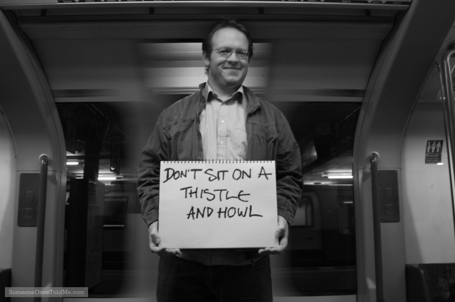411This was passed on to him by his maternal grandmother, through his mother, and means that you shouldn't complain about your situation if it is an unhappy one, but rather do something about it instead. Wise words indeed. Taken at White City tube station, London.