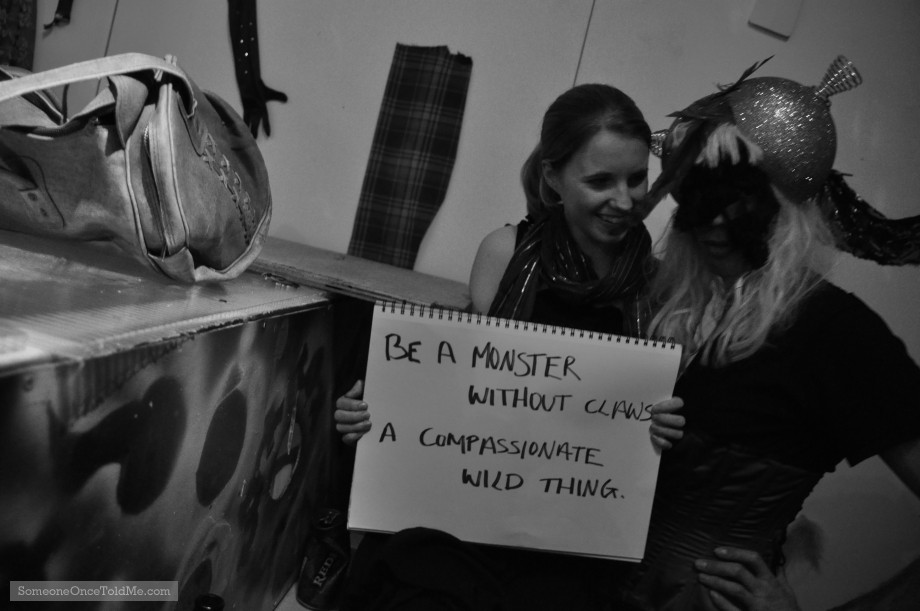 962Her friend had scribbled this down in a notebook while they were in a little village in northern India, and it stuck in her mind thereafter. Check out her audio commentary for more. Taken at a Twisted Cabaret party in Manor Park, London. The monster on the right was a spontaneous appearance.