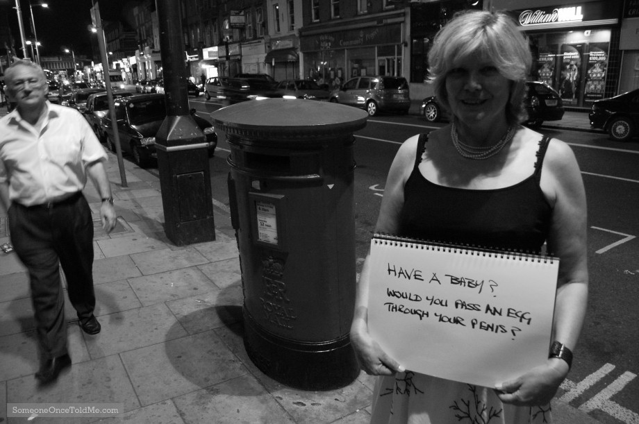 This is what the subjects friend said to her partner when he raised the prospect of starting a family. Taken in Kilburn High Road, London the chap on the left walked right up to me while I was taking this photo and stopped, clearly expecting me to move out of his way on a wide pavement. I didnt.