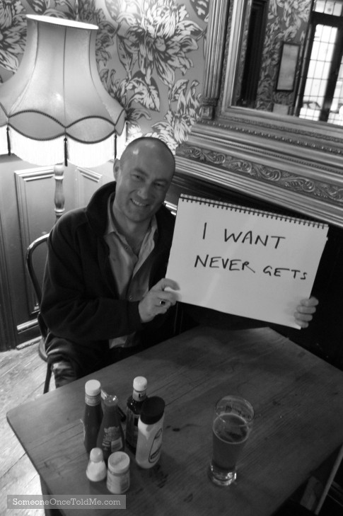 358This Geordie lad said he was always told this by his parents, presumably when he was much younger. Taken at the Sun In Splendour pub in Notting Hill, London, on yet another BBC night out.