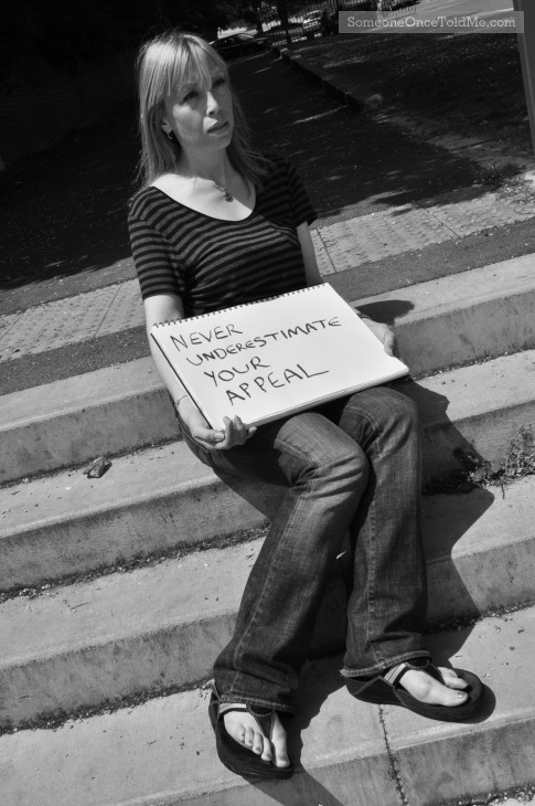 "true irony...always, it's the best-looking women who think this...from your furrowed brow to your pretty feet, you are lovely (perhaps best to send this to her anonymously...?)"